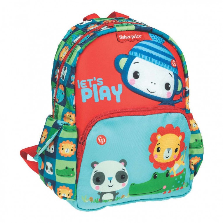 Σχολική τσάντα η οποία μπορεί να φορεθεί στην πλάτη, κατάλληλη για παιδιά νηπιαγωγείου της εταιρίας Fisher Price σε κόκκινο χρώμα.